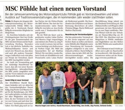 12.10.2021 Auf unserer Jahreshauptversammlung am 11.09.2021 wurde unser neuer Vorstand gewählt. Somit können wir unsere Ziele, insbesondere den Motorsport-Bereich weiter auszubauen und unsere schon traditionell gewordenen Veranstaltungen wieder stattfinden zu lassen, erreichen. Quelle des Berichts: HarzKurier