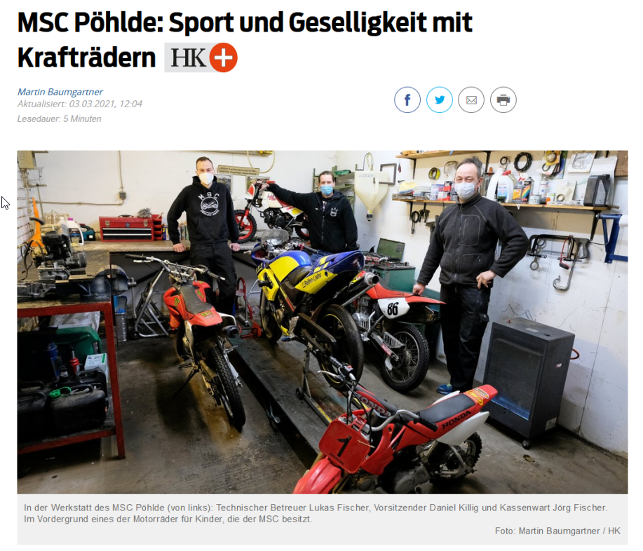 03.03.2021 Ein Artikel über die derzeitige Arbeit des MSC in der Corona-Pandemie war am 03.03.2021 im HarzKurier zu lesen, zum Artikel geht es hier* *um den gesamten Artikel zu lesen, ist ein HarzKurier Plus Abonnement erforderlich.