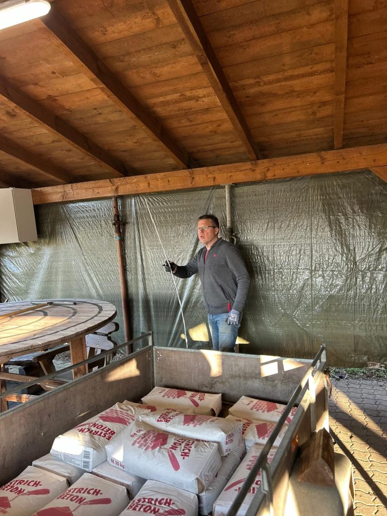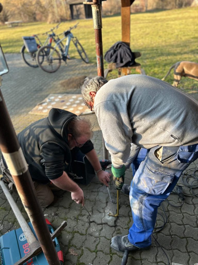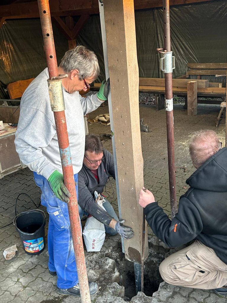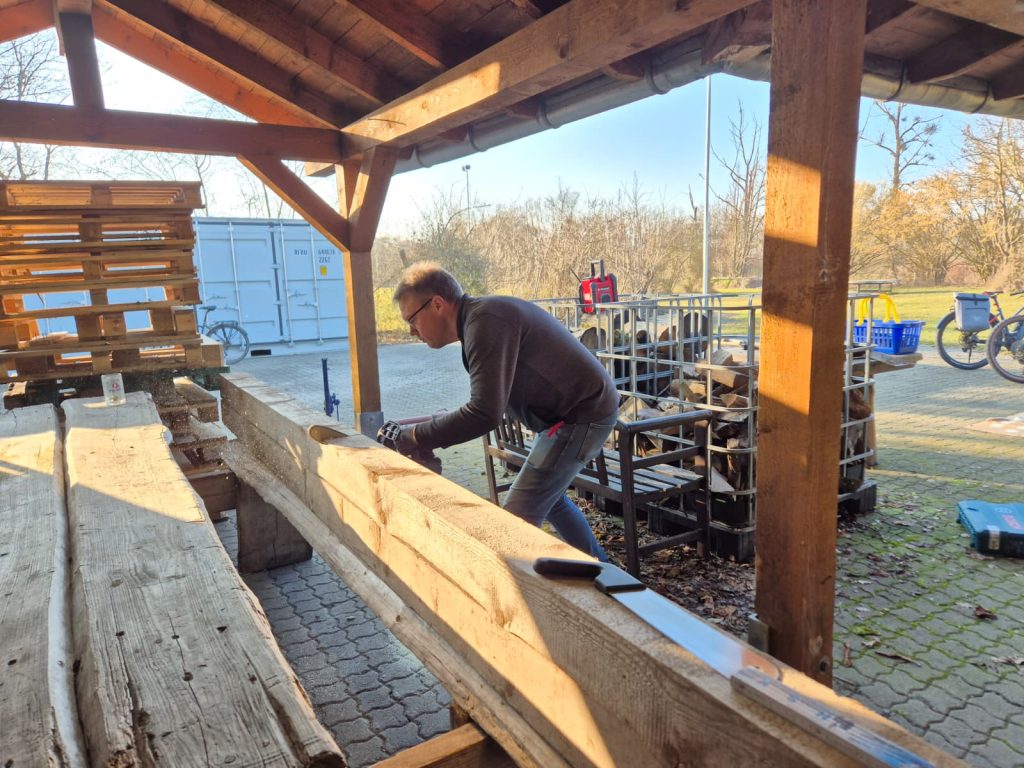 Da sich einige Balken unserer Grillhütte auf dem Zeltplatz an vier Stellen abgesenkt hatten planten wir am 5.3. und am 7.3. entsprechende Wartungsarbeiten.